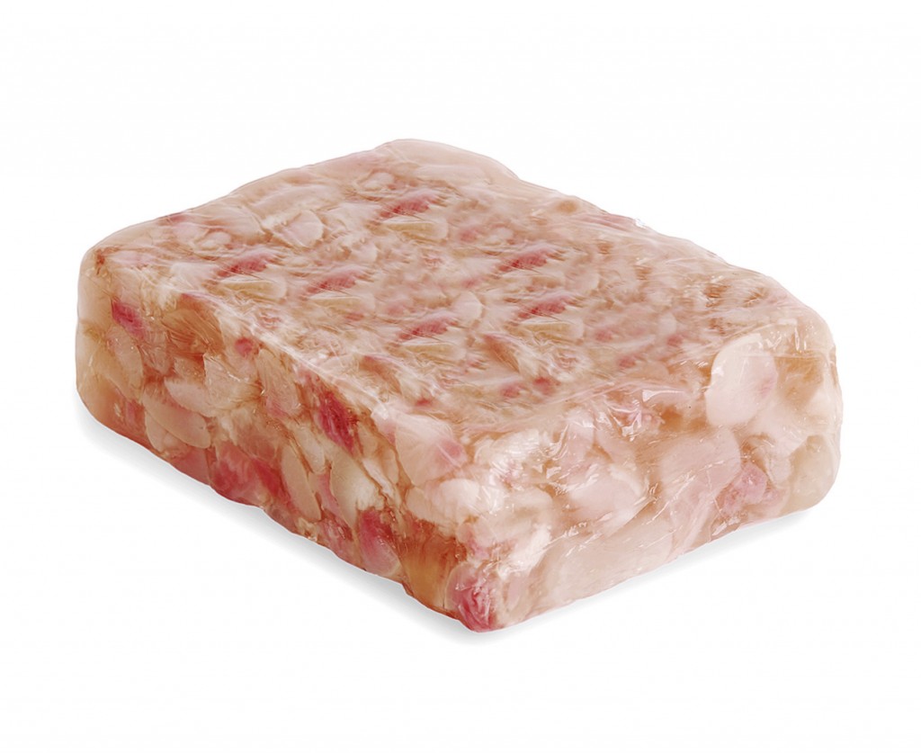 nervetti di vitello toelettati, tagliati, lasciati macerare con la salamoia, cotti a bagnomaria, immersi con la gelatina in uno stampo, raffreddati, confezionati sottovuoto in condizioni controllate, pastorizzati e nuovamente raffreddati